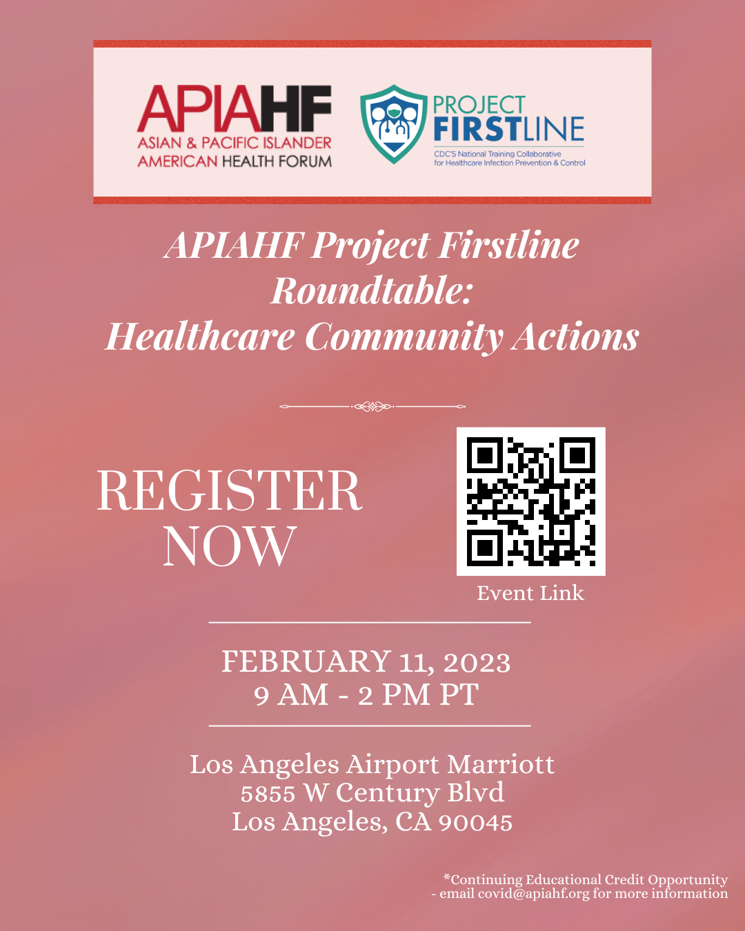 We cordially invite you to our APIAHF Project Firstline Roundtable: Healthcare Community Actions on February 11, 2023, at the Los Angeles Airport Marriott. Join us for this unique opportunity to learn more about what infection control means for our frontline healthcare personnel from nurses to our EVS technicians. See our event page link for a preview of our agenda!